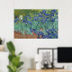 Van Gogh började måla "Irises" kort efter att ha anlänt till asylen i maj 1889, som arbetade från sjukhusträdgården. I biet saknas de starka känslor som finns i hans senare verk. Van Gogh beskrev målningen som "blixtledaren för min sjukdom" och trodde att det hjälpte honom att avfyra galenhett. Målningen påverkades sannolikt av japanska ukiyo-e-träblocktrycken, liksom många av hans och andra contemporary konstnärers verk. Inverkan visas i de starka konturerna, ovanliga perspektiv, inklusive närhet, och det platta, lokala färg som inte följer ljusets fall. "Irises" framhäver en känsla av mjukhet och ljughet, mutande med livet men fritt från tragedi.