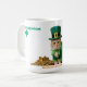 Irish Best Cat Mom & Dad in the World Mug, Cat Image content generative, cat dressed as Leprechaun and sit on a gold treasure. You also have the luck greetings in a shamrock frame.