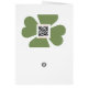 Detta St. Patrick-Day-kort har en grönt och guld fyra lämnade klöver på framsidan tillsammans med färg på det irländska flagga. På insidan finns en irländsk välsignelse tillsammans med Gaelic St. Patrick's Day välsignings, "Éire go Brách" och "Lá Fhéile Pádraig Sona Duit", det är perfekten för att skicka alla era St. Pattys semesterhälsningar.