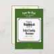 Att spara datum och personlig med (vilket namn som helst) och (vilket datum som helst) den irländska familjeåterföreningen firande är en underbar inbjudan till vad som ibland är en gång under ett liv i tillfälle. Spara datumet i vitt fet brev i stil i typsnitt på gröntens bakgrund. Vi firar våra rötter i guld-typsnitt med en familj träd under. Händelseinformation OSA osv. kan anges på baksidan i skriptet guld färg på en vit bakgrund