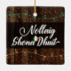 Iriska gaeliska julen hälsning - Nollaig Shona Dhuit rustic stil heday-prydnadsföremål, med en irländsk flagga, juldesign i ljus och snö på en rustik bakgrund.