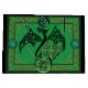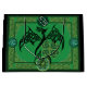 Svart drake med grönt Celtic jobbar vingar. Gröntens keltiska tonar fungerar helt bakom och runt draken och fyrklövert.