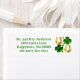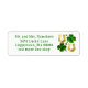 Irish Temed returetiketters. Smala, vita etiketter med grönt fyrlöv klöver och gyllene hästskoskonstruktioner. Fet utskriven text passar upp till fyra linjer för adress.