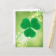 Det här smarta och moderna vykortet St. Patrick's Day har en enda grönt Irish klöver schamprock-anläggning som är centrerad mot gnistra grönt twinkle ljus bakgrund.
