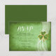 Svar eller svarskort från Irish klöver och Veil grönt Saint patrick Day bröllop OSA med en grönt schrock löv med guld konturer på en vit vågig slöja på gröntens griniga nedfläckad bakgrund. Denna moderna inbjudan till bröllopet ingår i en samling av bröllop eller bröllop och är en fullkomligt anpassade perfekt för en irländsk St. Patrick's Day bröllop.