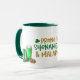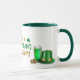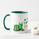 Här är en roligt mugg för St patrick's day, eller bara för alla som är stolta iriska! I den stiliserade texten vid mitten står det "Prone to Shenanigans & Malarkey" i guld och grönt, med två schyscher. Bilden på vardera sidan av texten är av grönt top hat, guld mynt och naturligtvis ett glas grönt öl. Cute!