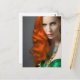 En vacker rödhårig kvinna klädd i grönt till St. Patrick's Day