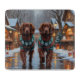 This festive design captures the joyful spirit of the holiday season, featuring an adorable dogs.Nestled in a winter wonderland, complete with a decorated Christmas tree, and beautifully wrapped presents. Snowflakes gently fall, adding a magical touch to the scene, while the vibrant colors of the holiday decorations create a warm and cheerful atmosphere.