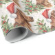 A heartfelt watercolor illustration featuring an Irish Setter wearing a Santa hat, framed by holly leaves, red berries, and soft winter accents. Warm brushwork and rich, natural tones create a classic holiday design that feels timeless and comforting. Perfect for dog lovers and thoughtful Christmas gift wrapping that celebrates loyalty, warmth, and tradition.