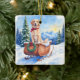 Irish Setter Enjoying Christmas Sleigh Ride Winter Julgransprydnad Keramik