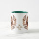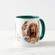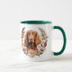 En söt höstandekrans i burnbrunt, brunt och kräm omger vattenfärgsbilden av en vacker röd irländsk Setter-hund. Bilden skrivs ut två gånger på mugg, med anpassningsbarna mellan dem.