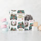 En tårblått pickup lastbil bär en dekorerad Helgdag träd och presenter paket på denna söta gåva som omsluter papper. En vacker röd irländsk Setter-Hund ser ut från skuggan. En rustik träskylt på stötfångaren säger "Julturen". Ditt monogram är inneslutet i en söt gräs-kon och röd bärets andetag, och den stiliserade texten från guld säger "God jul". Du kan också anpassa avsnittet "från Namn".