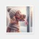 En irländsk Setter hund som bär sticka hatt och scarf har fått sin rosa tunga fast vid en frostig metall polare.