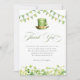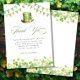 Share your gratitude with these personalized St. Patrick’s Day baby shower thank you cards, featuring soft watercolor shamrocks, festive green bunting, and a charming leprechaun top hat. Designed to coordinate with your Irish-themed baby shower décor, these elegant cards are perfect for thanking guests for celebrating your little lucky charm.