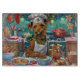 Fånga helgdag glädje att baka med den här härliga scenen med en glad kock omgiven av julgransar och festliga dekorationer. En hjärteberande firande av årstidens sötaste traditioner.