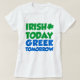 Grekiska Morgondagens irländare, i morgon, en lustig perfekt för en grek på St. Patricks Day, på ett irländskt pub eller på en irländsk festival. Du beter dig som om du är irländare idag, men i morgon blir du fortfarande grek!
