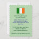 Födelsedagsfest inbjudan med Irlands flagga och ord FLÖDEN AV KIEFTAINER GENOM MIN VEINS OCH IBLAND SINA WHISKEY. Bakgrunden är ljust grönt. Party på framsidan kan vara personlig. Tillbaka är tomt för det speciella meddelande, den riktning eller den spelar ingen roll du vill ha.