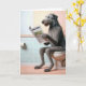 En stor, shagisk Irish Wolfhound hund sitter på en toalett och läser en tidning med titeln "Hund News", som skapar en humoristisk och visuell scen. Inre text kan ändras.