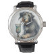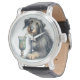 Söt irländsk Wolfthound som sipprar på ett halm i ett retro-soda-glas.