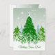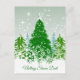 Iriska gaeliska julen - Snöig grönt fir-träd och mousserande vita stjärnor på blekens grönt bakgrund. Den irländska texten framför oss säger: Lycklig jul till er (adress till en person). På baksidan av vykortet på iriska: God jul och gott nytt år till dig (singular).