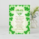Irländska välsignelser och treklöver är symboler för lyckokort. Bilden visar ett St. Patrick's Day-kort med grön kant bestående av treklöver. Den centrala panelen är en ljus, elfenbensvit färg med guldfärgade accenter.