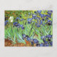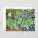 Ett vykort för brans konst med den postimponerande målningen Irises (1889), av den nederländske konstnären Vincent van Gogh (1853-1890) En grupp blåviolett iris i trädgården, som påverkades av japansk konst.