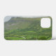 Irlands iPhone-lucka i fodral med irländsk miljösyn, fält och gårdar nära Glencar Lough i County Leitrim.