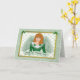 Vacker irländsk ängel i grönt med blekgröna vingar. Hon håller en banderoll som säger irländsk ängel. Ängenaccentuerad med shamrock. Gammal irländsk välsignelsevers inuti. Anpassa med din hälsning och signatur.