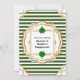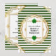 En vacker design med horisontella skogsgröna och vita ränder ramade av en falsk guld scallopad kant på vit botten. Det finns två gröna fyrklöverbilder på framsidan som ger en känsla av elegans och stil.