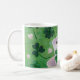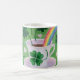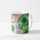 Lycklig och gullig konst målade vid Naomi Ochiai från Japan. Många älskar kaffe!! Den gulliga kaffekoppdesignen med shamrocks i grönt tonar och en härlig regnbåge som inspireras från irländsk saga. Shamrock och fyrklöver design. Trevliga gåvor för irländare och för st patrick's daygåvor och de som älskar shamrocks och klöver. Du kan skräddarsy text och mer.