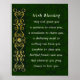 Irish Bluting poster en elegant guld-kreativ-grafik som är irländsk med schamprockar på en abstrakts mörk grönt bakgrund. Det är en vacker välsignelse: "Må Gud ge dig solstråle för att värma dig, en månskål för att charma dig, en skyddsängel så inget kan skada dig. Skratt för att hedra dig, trogna vänner nära dig. Och när du ber, himlen för att höra dig." Brans val för en välsignelse av bröllop och många andra tillfälle.