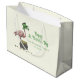 Dessa festliga irländska Shamrock Flamingo St. Patrick's Day Ivory stora presentpåsar har en lekfull rosa flamingo som bär en läppgubbehatt bredvid en kruka med guldmynt, allt mot en festlig grön bakgrund. Den charmiga designen skapar ett fullt koordinerat, iögonfallande utseende perfekt för din fest.