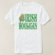 Detta Sts Patrick dagdesignen presenterar en skäggig tecknadshamrock som röker en leda i rör och ha på sig en grön hatt med förse med text "irländsk huligan.",