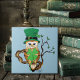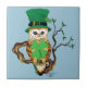 Söt uggla som bär en grön läppäkhatt med två klöver i.