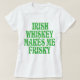 Detta presenterar den roliga Sts Patrick dagdesignen slogan, "som irländsk Whiskey gör mig yster" i stor grön text.