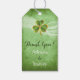 Den irländska klöver och Veil grönt Saint patrick Dag-märkrn med Tack-gåva med en grönt schrock löv med bröllop konturer på en vit vågig slöja på guldets griniga grönt-bakgrund. Denna moderna inbjudan till bröllopet ingår i en samling av bröllop eller bröllop och är en fullkomligt anpassade perfekt för en irländsk St. Patrick's Day bröllop.