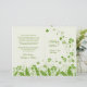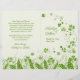 Bröllopsprogram med snabbt iriserande schamprock i en skugga.