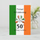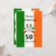 En rolig festinbjudan till en irländsk temafest eller evenemang i de irländska flagga tri-färgerna; grön, vit och orange med ett shamrock-motiv. Lätt att anpassa med dina festdetaljer utan extra kostnad. Inbjudan visas som en 50-årsfirande men ändra gärna texten för att passa din ålder eller ditt evenemang.