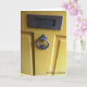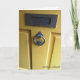 En gul dörr med en traditionell Claddagh dörrknackare och postar den visade springan. Image fångade i Galway, Irland. Blank noterar kortet. Anslå för någon typ av noterar till älskad.