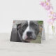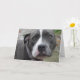 Denna ursnygga show för födelsedaghälsningkort som bedöva avbildar av en irländsk hund för Terrier för den blåttStaffordshire tjuren på bekläda. Insida födelsedagkortet som den har i svart bläck "har en jätteglad födelsedag!", i centrera av den. På baksidaen av kortet har den en mindre version av hundbilden som är på bekläda av kortet. Detta är ett härligt kort, ideal för en vän eller älskade.