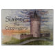 Denna akvarellmålning var inspirerad av en resa jag tog till Irland. Slottet ligger i Doolin, County Clare. Dess fantastiskt varma landsbygd i kontrast mot den stormiga himlen och bakgrunden av det medeltida slottet frammanar verkligen dess magiska kvalitet. Bilden är lämplig för att servera upp en varm välkomst!