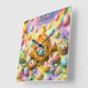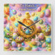 Description brighten every hour with the enchantment of springtime with this hope is ready to hatch square wall clock whimsical timepiece features of fluffy yellow chick perched a top of glowing golden egg surrounded by a vibrant field of decorated Easter eggs and a sweet white bunny set against a dreamy rainbow sky with a cheerful message happy Easter this colourful scene perfectly captures the joy
