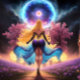 I en häpnadsväckande visning av psykologisk konst fångar denna förtjusande bild färg, moské inslag och människans förledande anlag. Centralkvinnan figur, en fantastisk kvinna med vackert böjda kupor, är en ledstjärna för de kortikala resande vågar och de djupa upplevelser av blåsor och förlossningar som följer med dem.