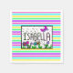 Söt lila och rosa fjärilar och blommor med pappra blöjor från namn Isabella-födelsedagsfesten.