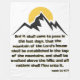 Denna filt har Isaiah 2:2-bibeln i fet stil med svart brev med gult och skugga och citat och bergsöverdel med gult som stigning sol i bakgrunden med detta trosbaserade tema. Blanketten är tillverkad av 100 % mjuk och mysigt polyester ull med kant till kant-pulserande sublimeringsutskrift av fullt och dubbla kant med en benvit färg bakåttvättbar.