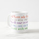 Vit kristen skrift mugg med färgstark text. Skripturen kommer från Isaiah bok och lyder: "Men de som hoppas på Herren kommer att förnya sin styrka. De kommer att skjuta på vingar som örnar: de kommer att springa och inte bli trötta, de kommer att gå och inte svimma." Varje linje ligger i olika färg. Välj storlek och stil mugg.