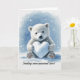 Isbjörn i snön med hjärtformad snöboll kort