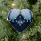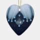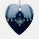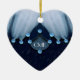 Fjädrar och diamanter pryder detta hjärtformade ornament. Den ursprungliga fotomontagen av ZoeSPEAK gjordes från ett originalfotografi av en skogstork och använder sig av en närbild på fågelns vita fjädrar, som ligger över svart fjäderdräkt. Bakgrunden under fjädrarna ser ut som en mörkblå tygbit med diagonala fläckar i neutrala toner. Gnistrande isblå diamanter framhäver kanterna på fjädrarna och pryder den ljusare blå formen i mitten, som har ett monogram i vita bokstäver som kan anpassas. Lägg till initialerna för någon du älskar, eller lägg till dina egna och ge ditt hjärta till någon. En blek turkos ton ligger över hela bilden och ger fjädrarna och diamanterna mjuka färger.