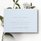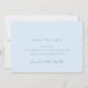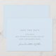 Mjuka blå save the date-kort med en minimalistisk design. "Formell inbjudan följer" är skrivet med kalligrafiskrift.