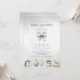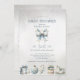 Fira en babydusch i äkta helgdag med den här juljuljuskupbjudan. I mitten sätter en charmig julböna en festlig ton, medan grund visar en vacker samling av klassiskt helgdag - en glasprydnad, en vackert förpackad gåva, en gammaldags leksak-häst, en musiklåda med ballerina och candy cane - som var och en tillför mysigt, elegant och tidlös julstämning. Det ljusblåa och guld färg-isigen skapar ett magiskt vinterunderland, mot en mjuk grått-bakgrund som känns som att falla i snö. Den här inbjudan fångar perfekt värmen och nostalgien i en klassisk jul och skapar den perfekt för en helgdag-temad babydusch som är både sofistikerad och framsynt.